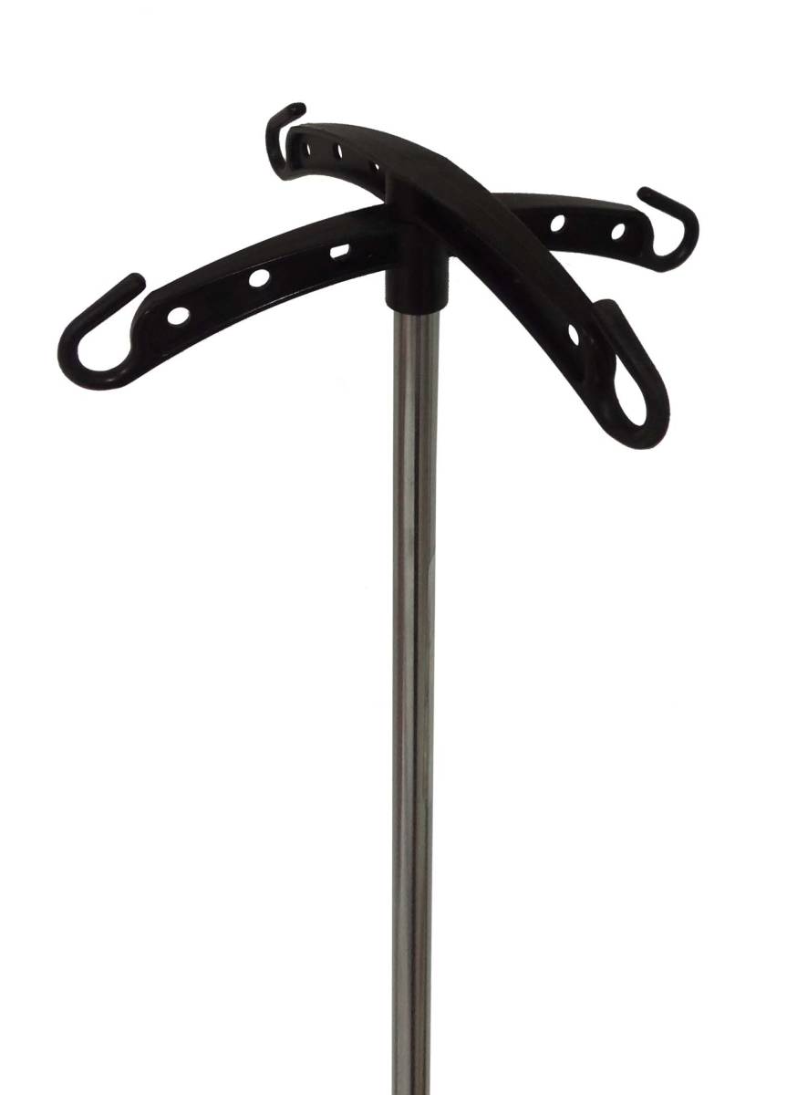 Chaque crochet peut supporter jusqu’à 1 kg, permettant la suspension simultanée de plusieurs poches de perfusion. Conçu pour un usage intérieur et extérieur, il accompagne les patients en toute sérénité, que ce soit à domicile ou en déplacement.